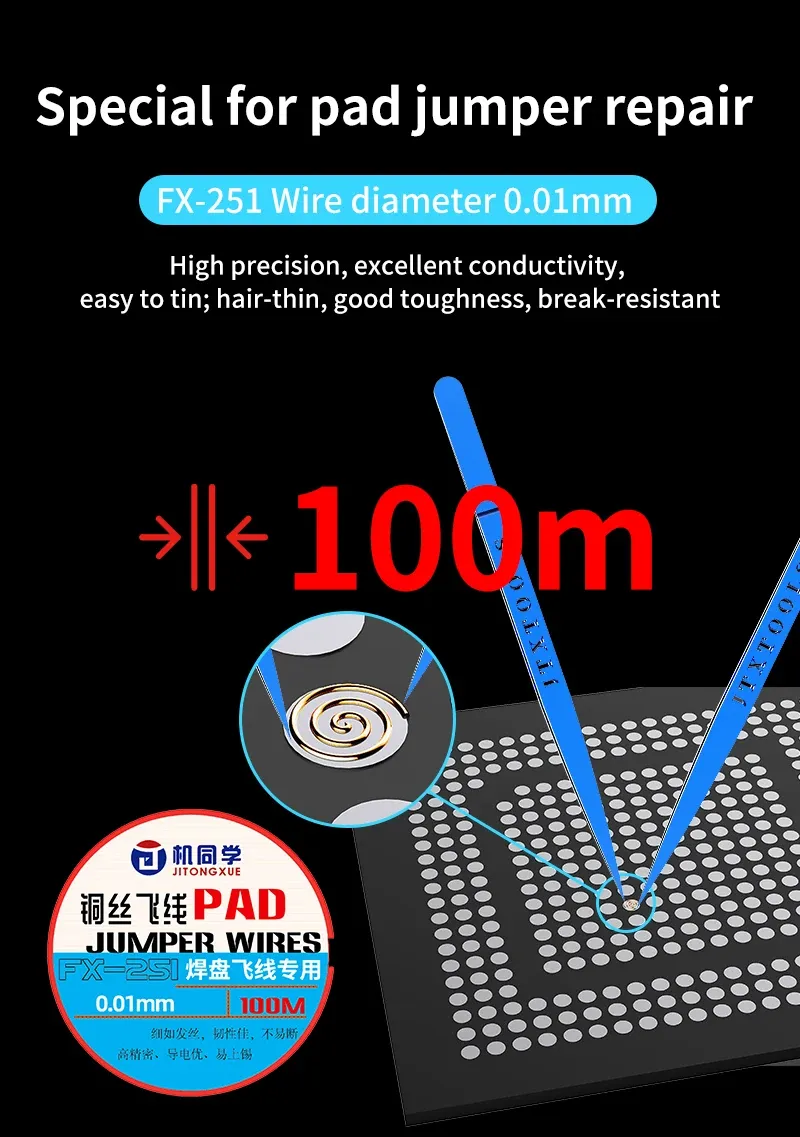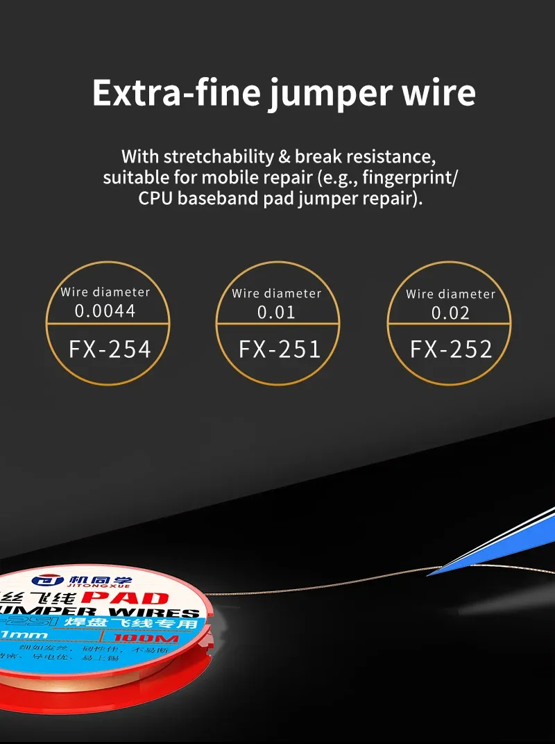 JTX Ultra Fine Jumper Wires for Phone Repair 0.0044mm 0.01mm 0.02mm واير باغات