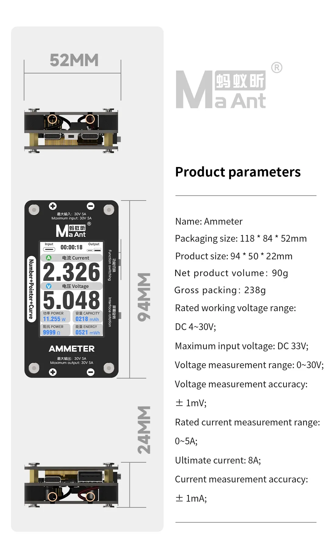 MaAnt DL-02 Smart Ammeter 30V 5A