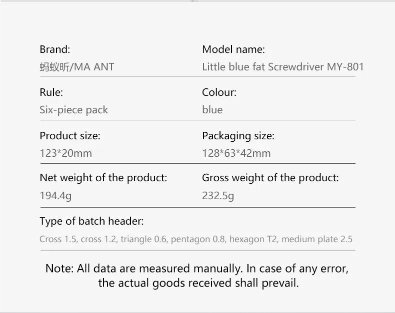 MaAnt MY-081 Little Blue Fat Screwdriver طقم مفكات 6قطع