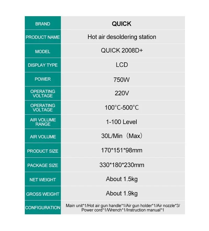 QUICK 2008D+ 220V 750W Hot Air هوت اير كويك