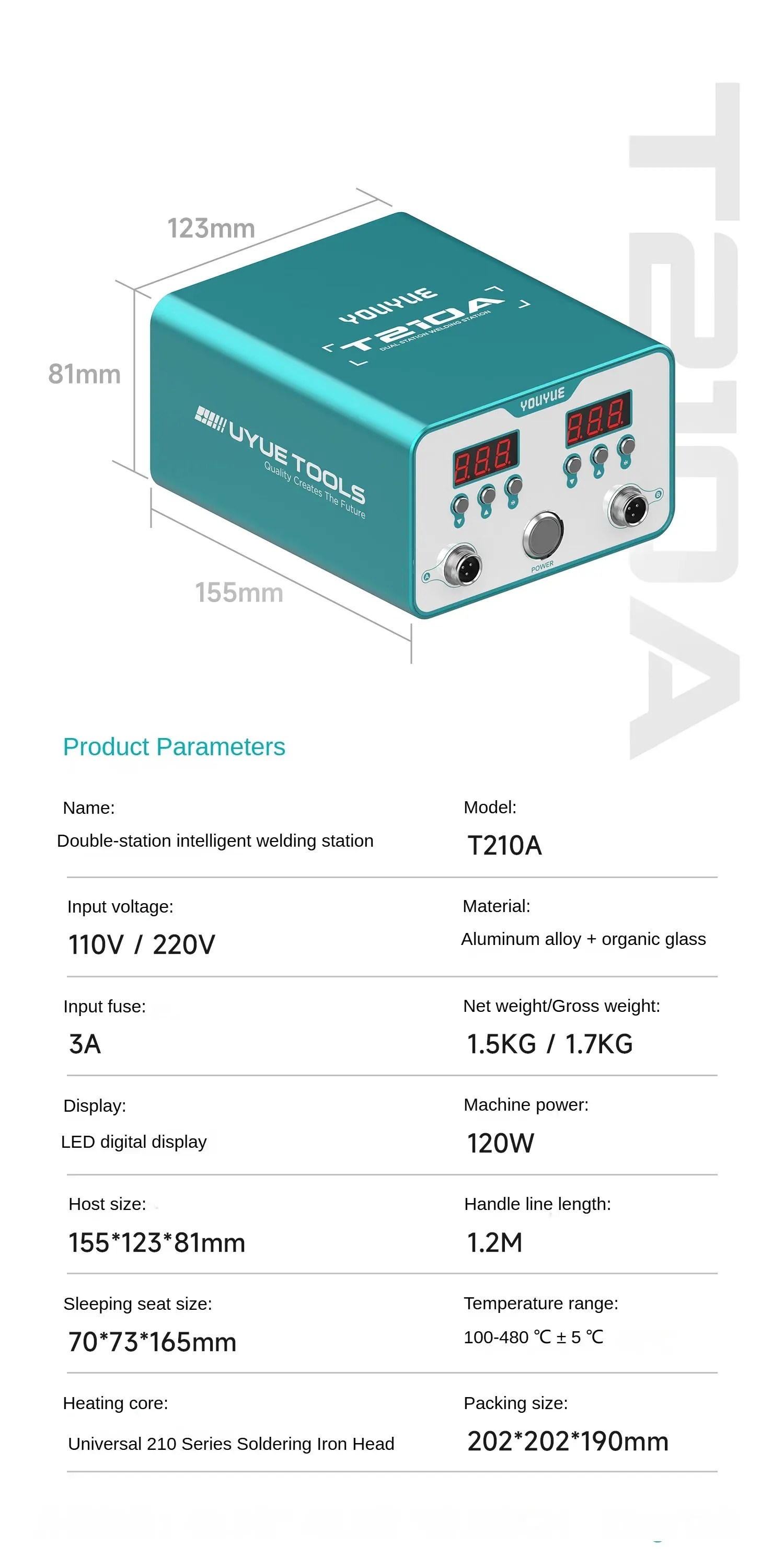 UYUE T210A 120W Dual Station Soldering كاوية لحام بدراعين